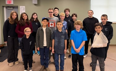 From left to right: Abby, Ayla, Thomas, Nolan, Eli, Xander, Lincoln, Robert, Brayden, Kyle, Marshall, Blake, Sammy (Instructor), Karthi, Edgar